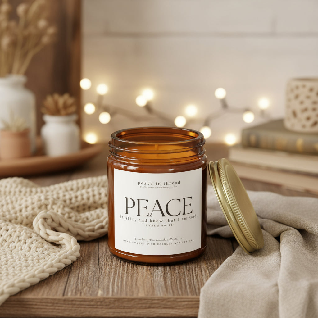 The PEACE candle is a quiet reflection of God’s stillness — a gentle reminder to rest in His presence and breathe deeply.
