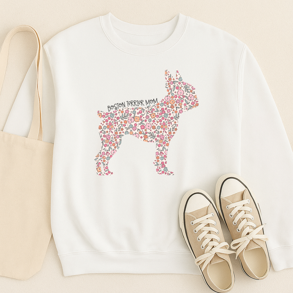 This cozy Wildflower Boston Terrier Mom crewneck is perfect for dog lovers, especially proud Boston moms! Featuring a playful floral Boston Terrier design, it blends charm, comfort, and just the right amount of pup personality — ideal for casual days out or snuggling in with your fun-loving, big-eyed best friend. Whether you’re treating yourself or shopping for another Boston lover, this sweatshirt makes a thoughtful and adorable gift.